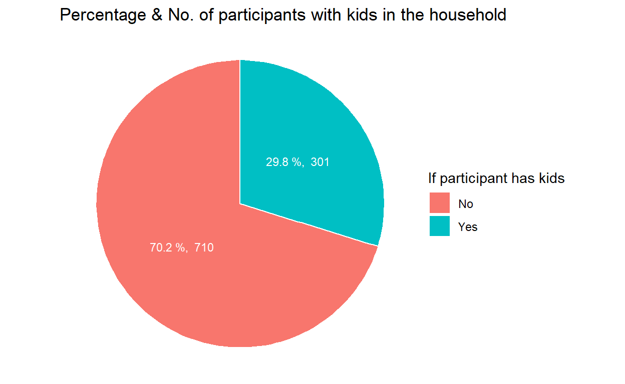 ggtitle("Percentage & No. of participants with kids in the household") +