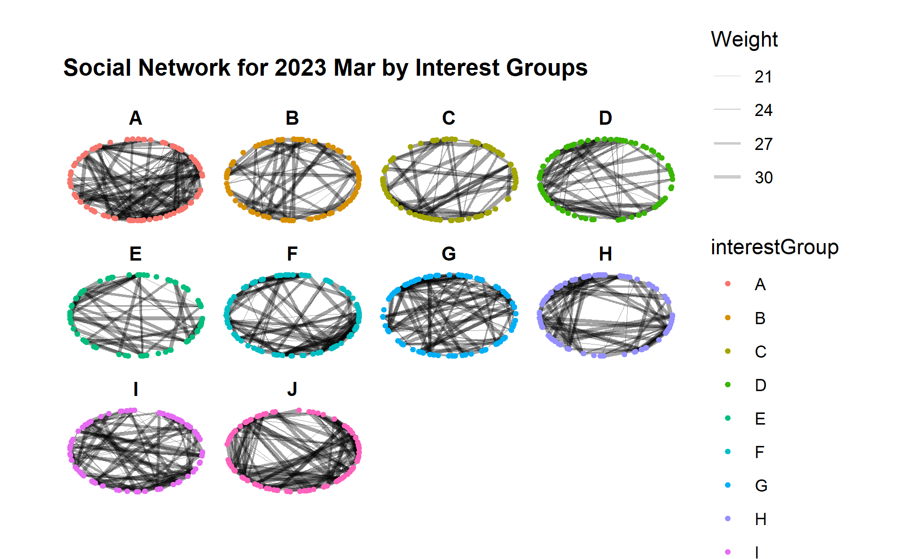 Below code chunk generates the network graph for 2023 Mar for different interest groups.