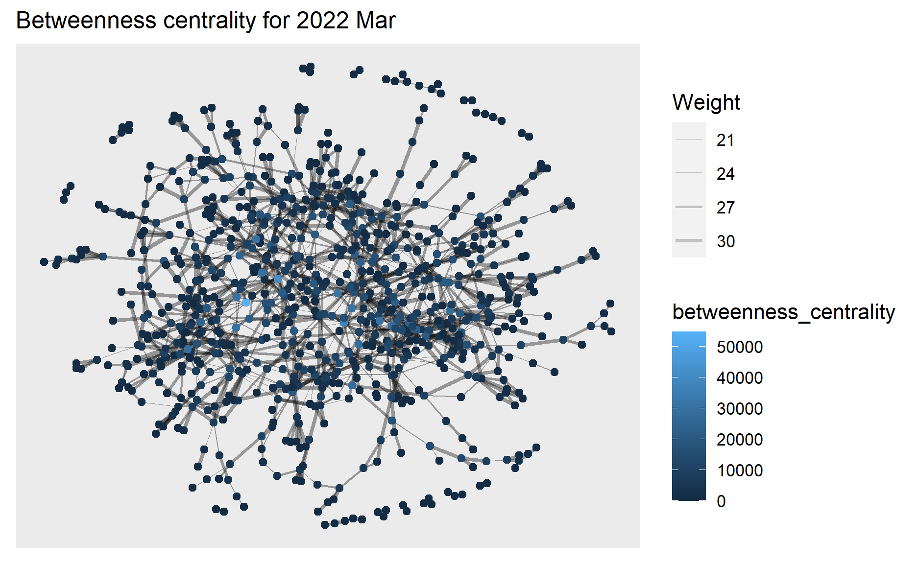 ggtitle("Betweenness centrality for 2022 Mar ") +